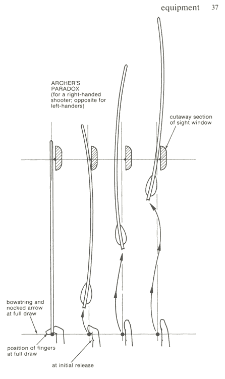 Part 2: - On all bows for 6000-7000 years, you couldn't aim directly at the target. The arrow would have to go through the bow handle. Instead you aimed off to the side and got arrows that would wobble just right so that they'd curve back to the center.