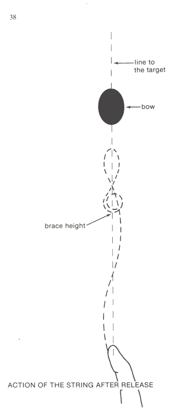 Part 1: - The string doesn't come straight forward, so the arrow doesn't come straight forward. It's an unstable equilibrium of an inverted pendulum. Done wrong, you'll shoot yourself with your own arrow...