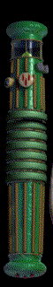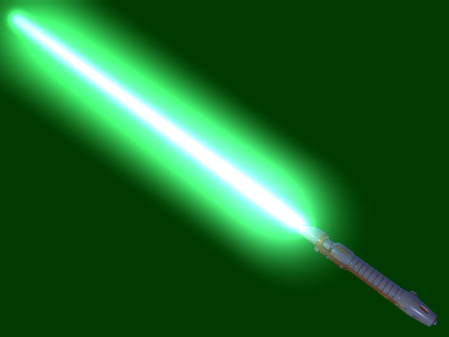 The scratchings are just that, scribbles converted into a bump map on the object. My original plan was to make them an intricate set of markings, but for now, the scribbles seem to work pretty well. The blade color is supposed to be a sickly greenish yellow. Lawler broke two crystals in the process of making this saber, finally suceeding with the last crystal the Dantooine conclave had available - the least desirable color.