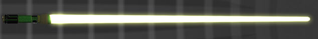 This lightsaber was given to Lawler by his instructor, Master Eelmo. Very low on frills, this lightsaber is durable in combat, and easy to care for. It is easy to repair, and has multiple connection settings, so that the learning Jedi will not lose it. Though this was not Lawler's choice of sabers, he seems to have accepted many aspects of it, since his new saber is similar to it in color, and belt connection style. He has opted to leave the more basic hand-grip style behind and use a smaller grip style.